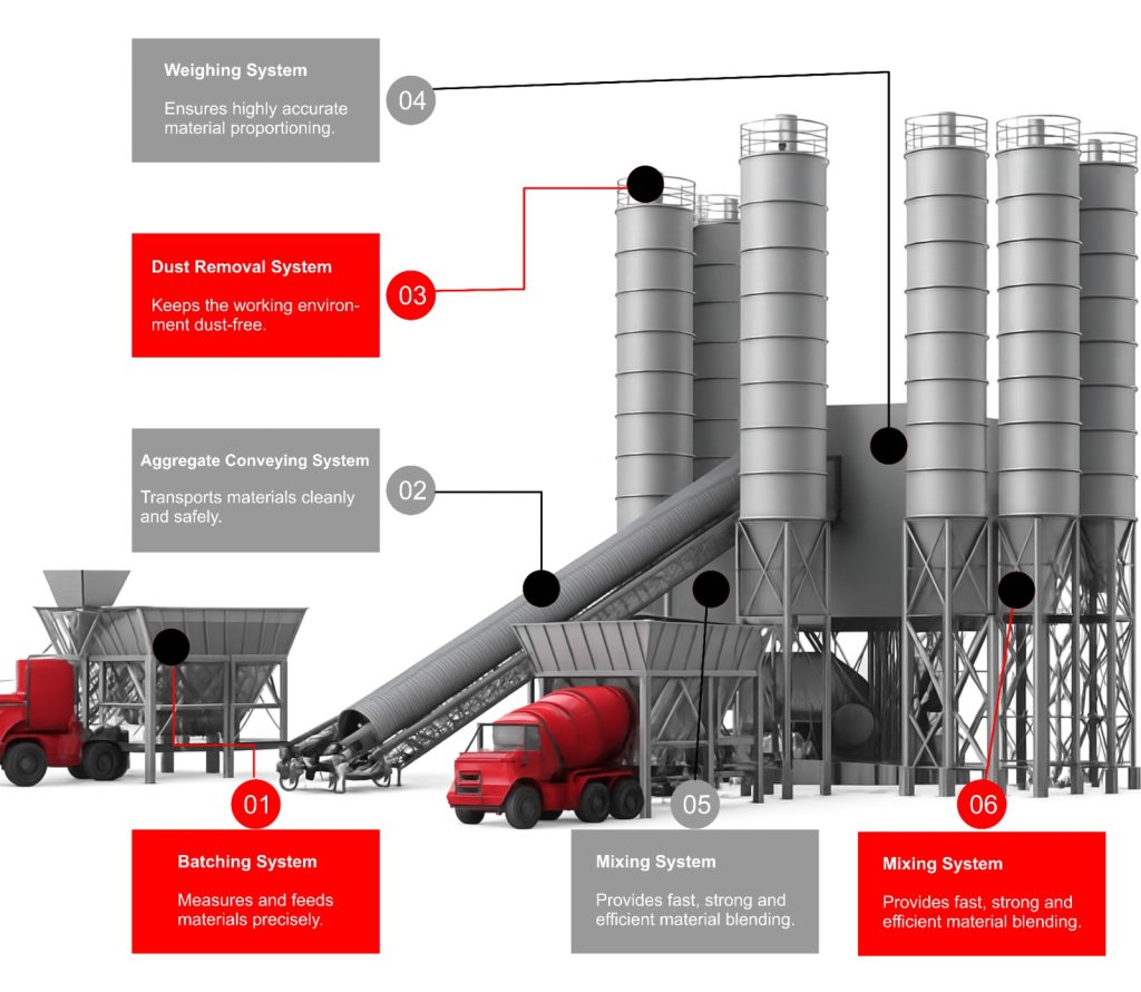 Our Concrete Batching Plants are designed for reliability, efficiency and consistent concrete quality. Built with cutting-edge automation and durable components, each plant ensures smooth material flow, precise weighing and fast mixing operations for ready-mix, precast and on-site applications. Whether you need a mobile batching plant for temporary sites or a stationary plant for large-scale operations, our solutions deliver unmatched performance and long-term value.