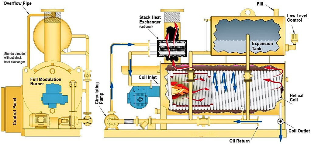 Diesel, Heavy Oil, or Natural Gas burners optimized for maximum heat transfer.